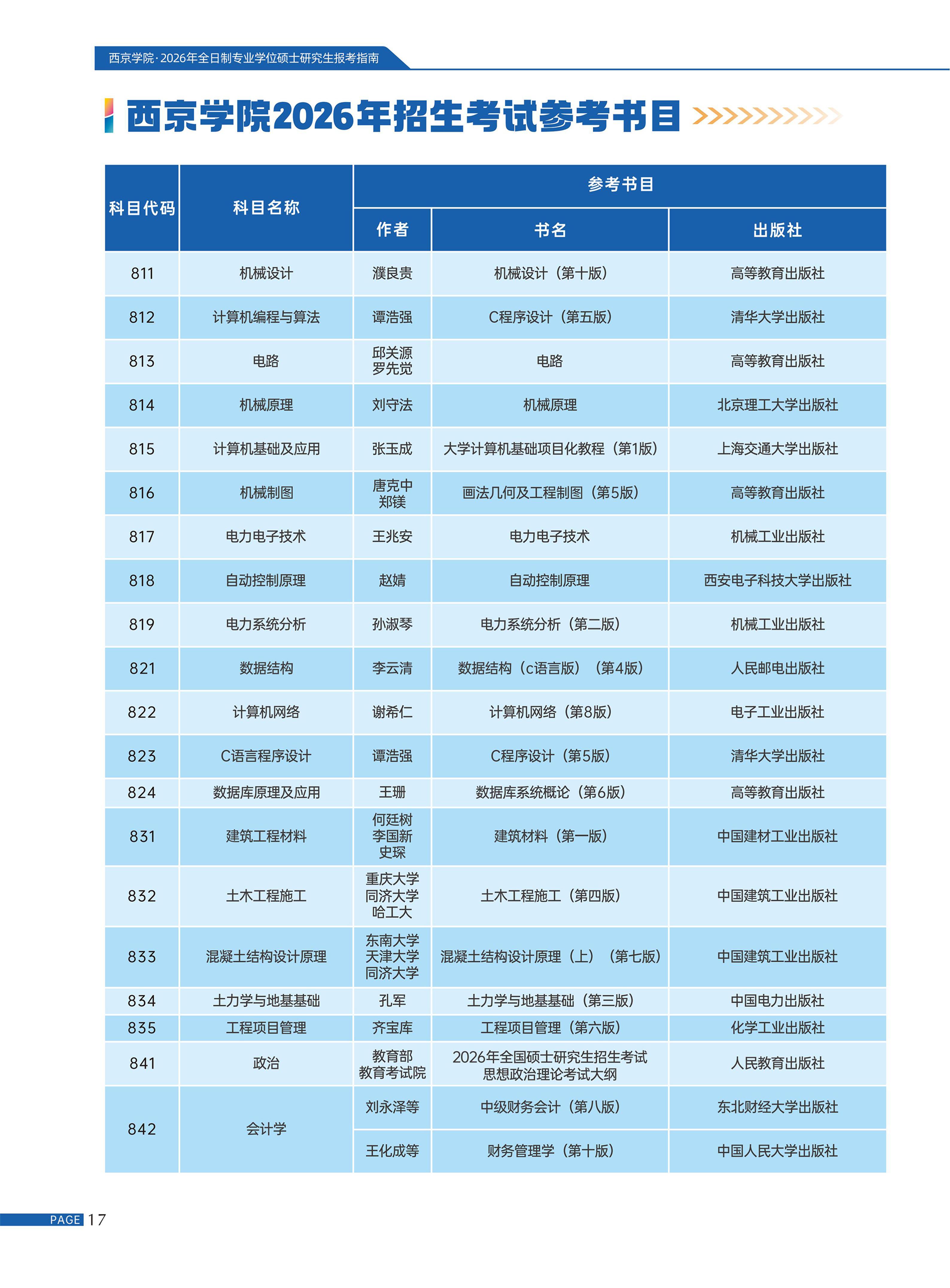 11.2026年招生考试参考书目